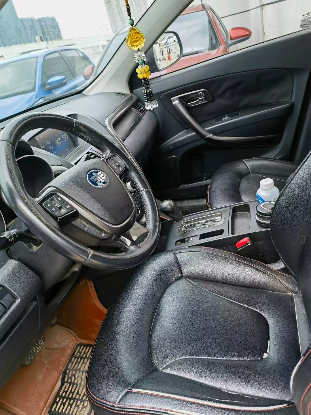 皮质方向盘材质,方向盘可上下、前后调节,配有普通遥控钥匙;