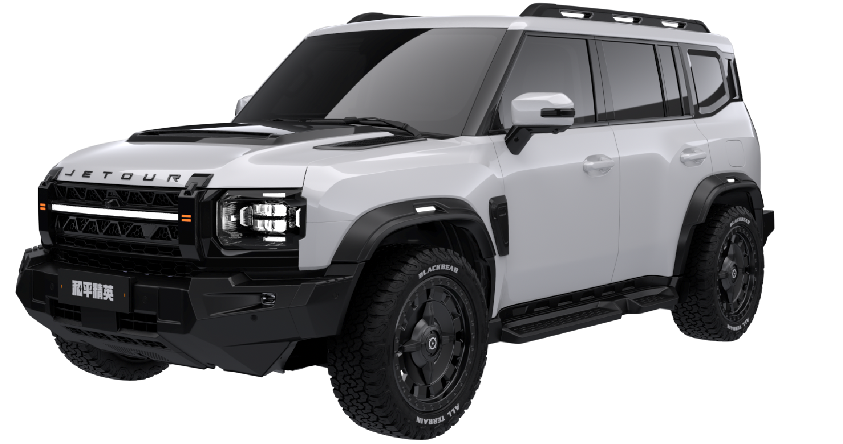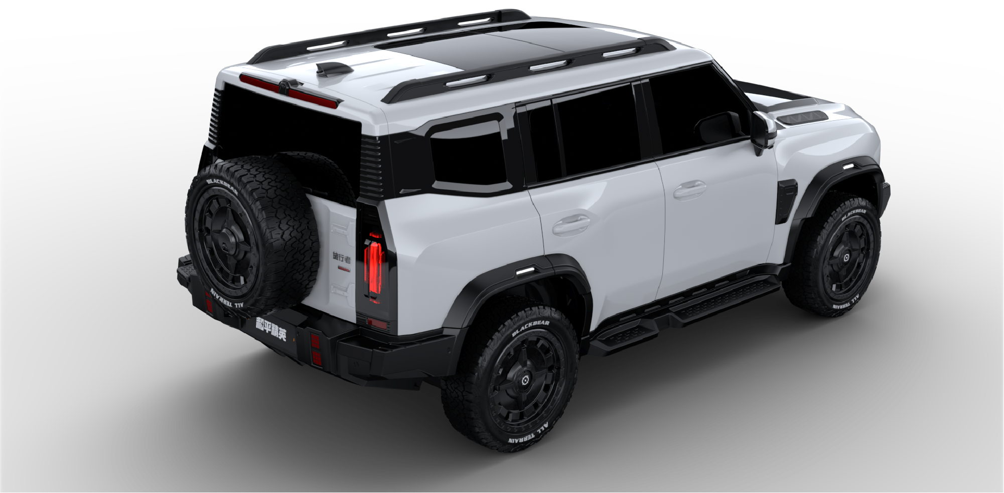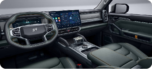255/55 R20全地形胎,全尺寸外挂备胎、钢笼式车身结构,XWD全自动智能四驱、7+X驾驶模式。